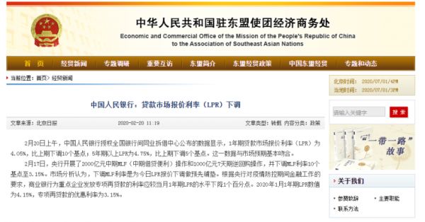2月20日上午,中国人民银行授权全国银行间同业拆借中心公布的数据显示,1年期贷款市场报价利率(LPR)为4.05%,比上期下调10个基点;5年期以上LPR为4.75%,比上期下调5个基点。