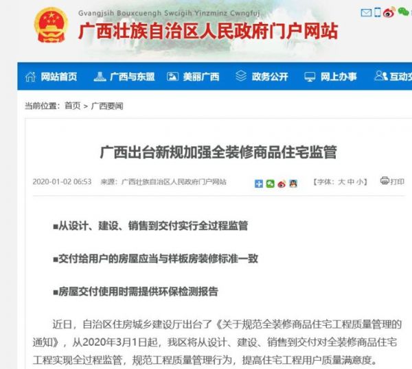 5、广西出台新规加强“全装修商品住宅”监管