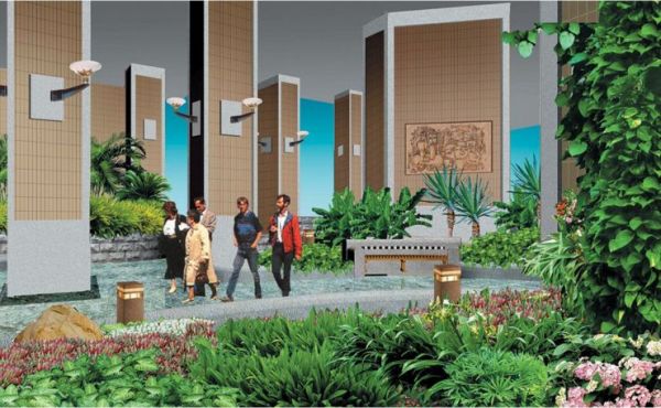 项目规划有10幢13层高的类洋房建筑,沿北、东侧布置,形成中央组团大花园,以及84套联排别墅,形成南低北高的空间形态。