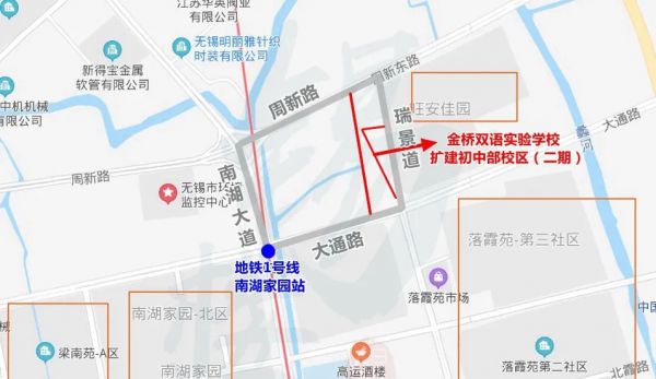 根据无锡市行政审批局官网昨晚公示的金桥双语实验学校扩建初中部校区(二期)项目批后选址意见书资料:该项目位于无锡经开区大通路北侧,瑞景道西侧,建设单位为无锡市太湖新城发展集团有限公司,主要功能为初中,总可建设用地面积为1394平方米。