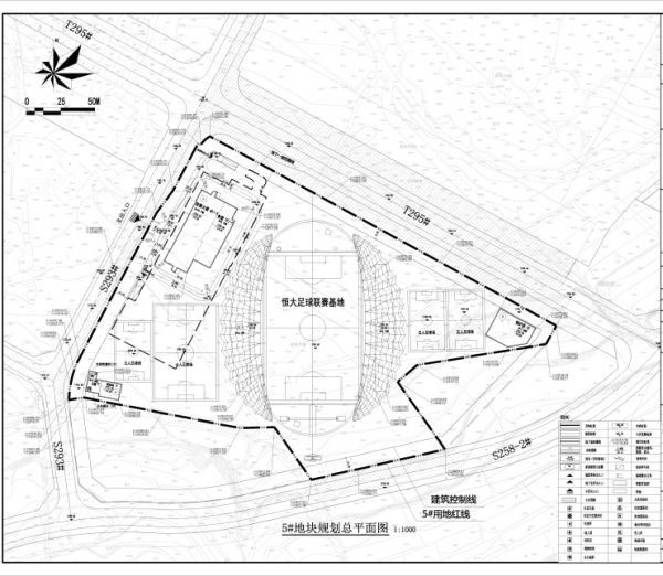 该地块上主要规划修建恒大足球联赛基地、三个五人足球场和一个七人足球场,还有一栋6层高的联赛大楼。未来将主要用于体育健身、足球训练及比赛。