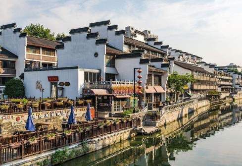 秦淮河、信府河和上、下浮桥河街的空间布局,集中了苏州、常熟、徽州街巷空间布局的长处:高墙窄巷有之,小桥流水有之,封火墙高大。民居多二至三进,门厅沿街,单层住房沿河或花楼沿河。临河的排窗扩大了视野,沟通了室内外空间的界限,夏日的河风更给沿河居民带来无尽的惬意。每当月轮初上、映照绿波之时,推窗四望,令人有“天地入吾庐”之感。
