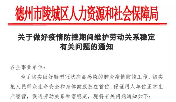 近日,陵城区人社局发布了《关于做好疫情防控期间维护劳动关系稳定有关问题》的通知。