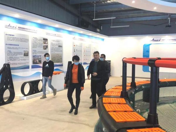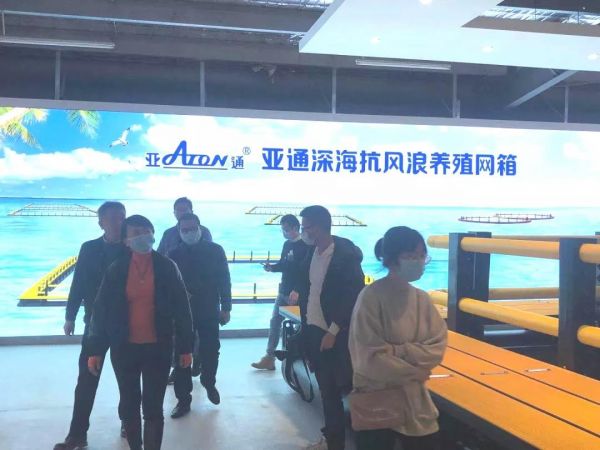 安全检查过后,一行人继续参观我司深海网箱项目,通过由工作人员带领讲解下,深入了解了亚通公司的深海网箱概况与成果,对深海网箱相关项目在全国成绩表示了肯定。