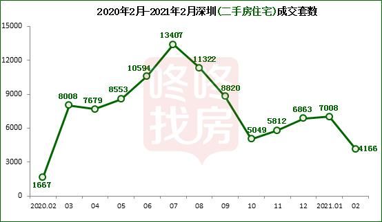至此,深圳楼市也开始哑火了,成交量大幅下降。数据显示:2021年2月,深圳成交4166套二手房住宅,环比减少四成。