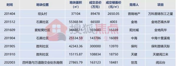 在中心城区土地紧缺的情况下,2014-2019年万江陆续划拨土地出让,楼面价也节节飙升,土地价值日益显露。