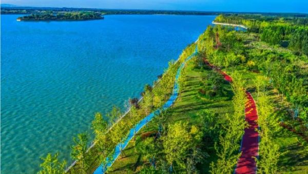 正如约8000亩安德湖小镇,生态城约2.8万亩林海环伺,与约15000亩黄河水乡湿地公园为邻,坐拥天然绿肺,高浓度负氧离子萦绕。