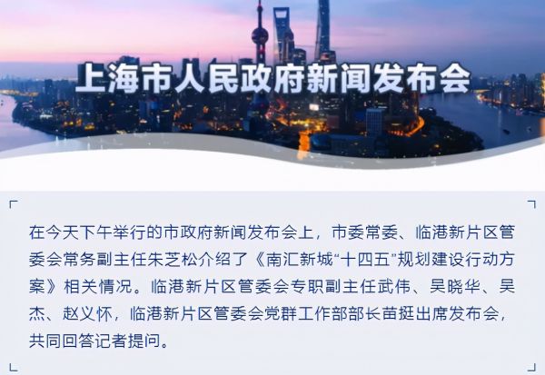 4月14日的市政府新闻发布会上,市委常委、临港新片区管委会常务副主任朱芝松介绍了《南汇新城“十四五”规划建设行动方案》相关情况。