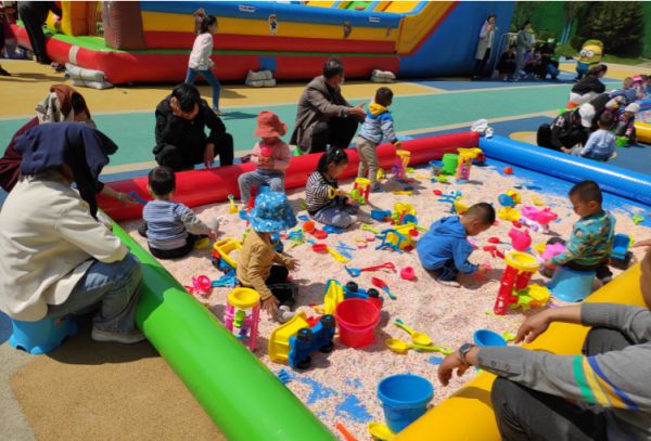 这里不仅准备了空气城堡,还有孩子们喜爱的钓鱼池、沙池等设施,萌宝们一起玩耍欢笑,沉浸在儿童的世界里。