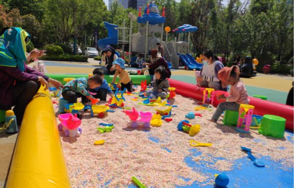 看到孩子们都在开心的玩耍着,父母们也都放松的聚集在一起聊天,有的在不停的给孩子拍照,留住这美好的时光。