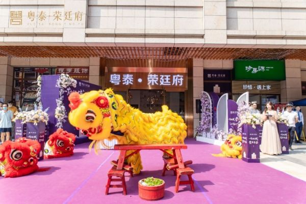 剪彩仪式后,销售中心继续锣鼓喧天,醒狮虎虎生威、意气风发,随着醒狮的步伐一同进入销售中心,共同揭开粤泰·荣廷府的神秘面纱,领略营销中心的魅力风华。