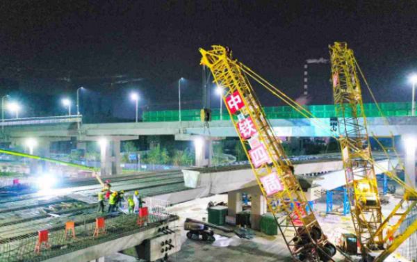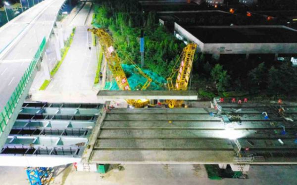 鹤洲南互通工程基本成型 “五一”最后一片预制梁成功对接