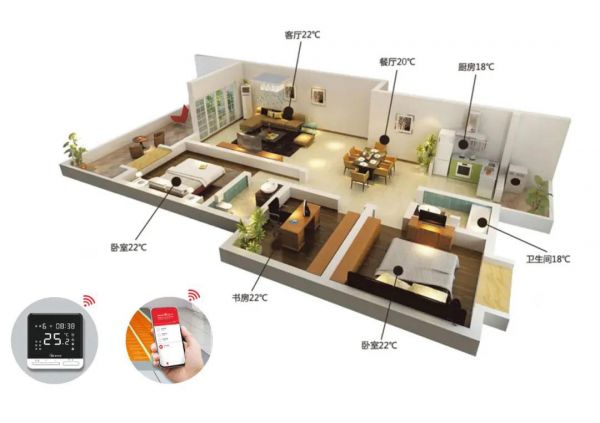 除此之外,PTC自限温、一键启动、远程操控及智能互联技术的应用,不仅确保了地暖的安全性,还能分室分时精准调温,给每位用户带来耳目一新的使用体验。