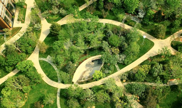 为了保持湖面水系的品质,两端配有生态净化池。园林下面安装了世界先进的雨水回收系统,让业主们不用担心北京突如其来的暴雨天气导致积水,又能实现节水环保。