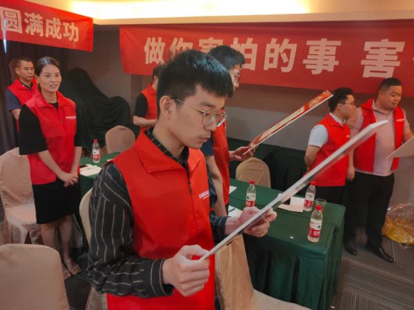 在誓师大会环节,销售目标详细分解到每个学员,并签定了任务军令状。“目标到个人,执行有过问,业绩可达成”,这种非常接地气的战书签署点燃了在场人员的热情,坚定了他们必胜的决心。
