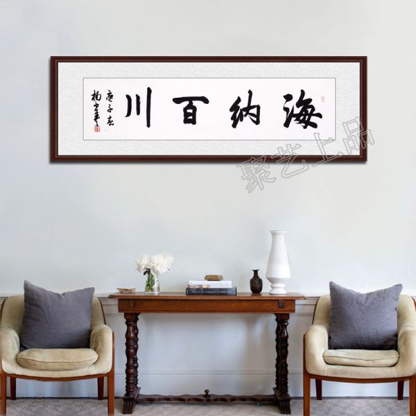 任正非说“心胸有多宽广,企业的路就有多宽广”、“视野能看多远,企业就能走多远”。大胸怀大格局是一个企业家的自我修养。一个企业家就要胸怀宽广,心里装着员工、客户、合作伙伴,达到“用天下之才、尽天下之利”的气度,有了海纳百川有容乃大的心胸,相信你的事业会越做越大。选一幅杨少英书法《海纳百川》书法挂在办公室,展示出领导的大气魄、大格局。