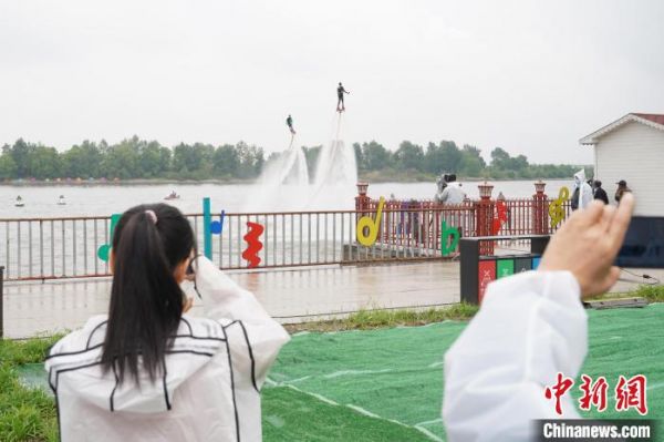 游客观赏水上飞人表演 吕品 摄