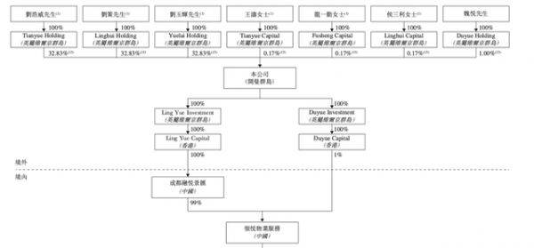 IPO发售之前,领悦服务由刘氏家族重权把控,在持股量的划分上也与领地控股完全相同。其中,刘玉辉与两位侄子刘策、刘浩威三人各自持股占比32.83%,龙一勤、王涛和侯三利各持占比0.17%。刘氏家族合计持股99%,唯一的局外人魏悦,手持剩下的1%股份。