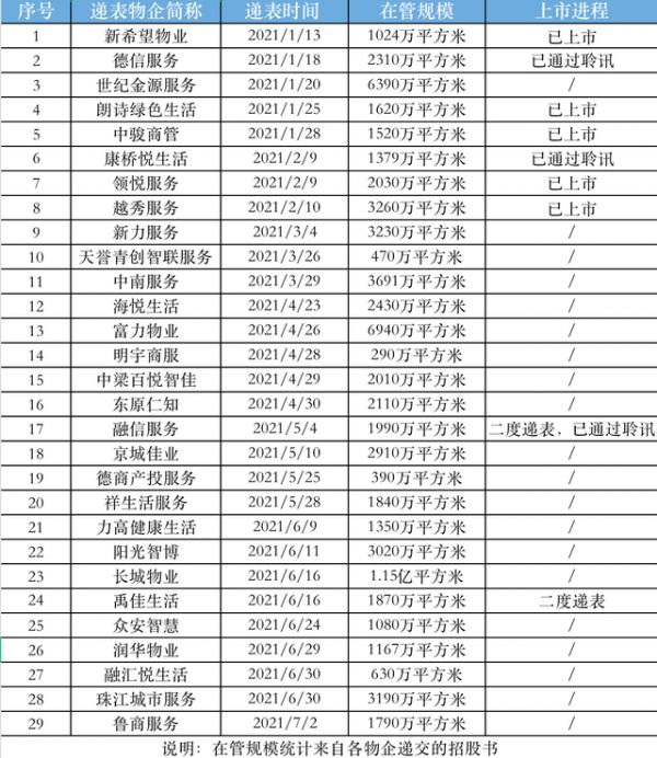 据乐居财经统计,今年以来,已有29家物企在港交所递表,除了长城物业在管规模过亿,其余20余家物企在管体量普遍偏小,其中有4家甚至未破千万。