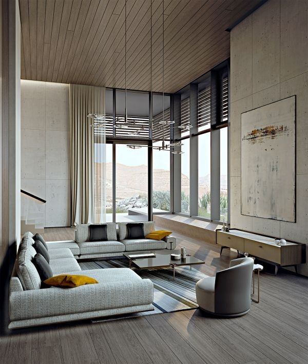 靠背与扶手一体成型,整个座椅完美融入结构中,并以舒适面料和皮革全面包覆;可旋转的金属底座带动了整体空间的自由氛围,让客厅趣味横生。