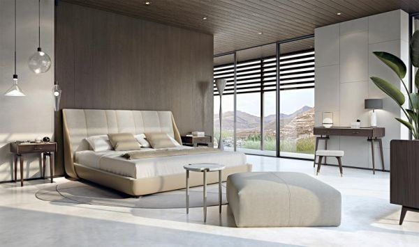 BLUES卧床流畅的线条渗透到廓形设计,厚实衬垫非常柔软舒适,让空间充满生气。床头板和床框设计以简约形式,结合对材料的精细推敲,尽显优雅精致。