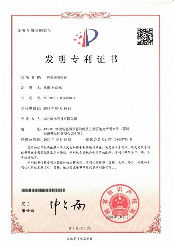 科技的发展带动智能生活前进的步伐,目前,滴水科技围绕“水尘环流”技术申请并获得了国内外总计140多项专利技术证书。在未来的清洁市场中,滴水科技还将继续专注于最新的清洁技术,专注于中国家庭清洁,让中国家庭家务不再繁琐,也让爸妈少一份劳累,多一些时间。