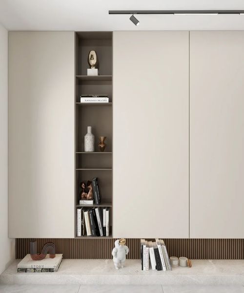 走进玄关,时尚感扑面而来,抽象童趣的雕塑艺术品,配合墙上的后现代几何人物画,仿佛走进了一个艺术展览馆,享受艺术的熏陶。靠墙的长方形组合柜,临时的物品放置再方便不过了,胡桃木色带来家的温馨感。