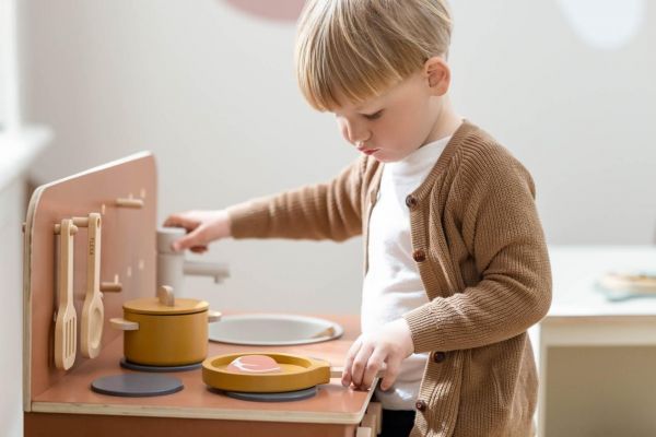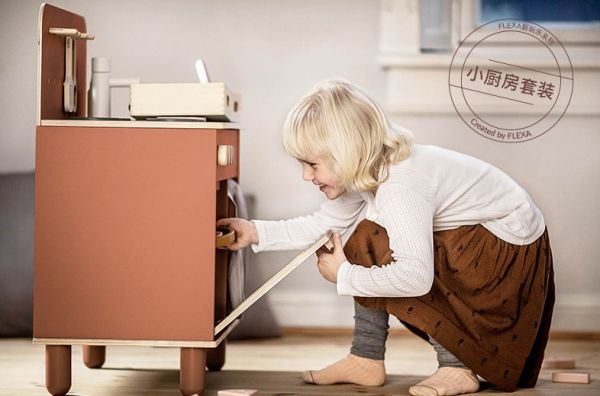 看似简单的过家家的游戏,对孩子们来讲,要想完整重现生活中的场景并非易事。拿FLEXA/芙莱莎儿童家具厨房场景来讲,该套装为孩子们准备了餐具套装、锅具套装以及装扮套装,除此之外还有水槽、可旋转的木纽、烤箱/微波炉、橱柜。孩子们需要操作各种道具让美食出炉,需要通过平时生活中的认真观察,了解做饭的先后步骤,并且在这个过程中还要与小伙伴和谐共处,共同完成任务涉及到各项能力的展现。