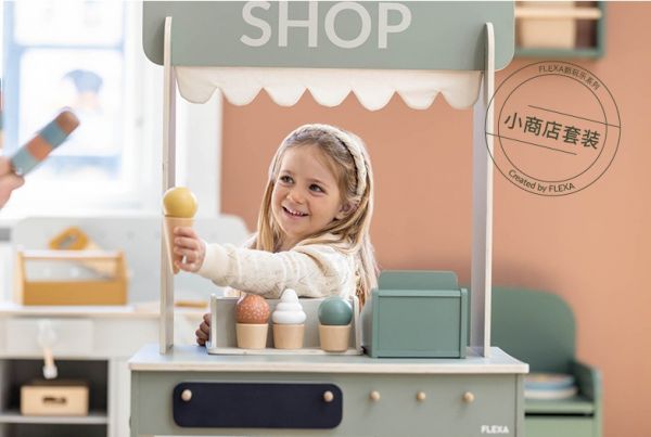 FLEXA/芙莱莎儿童家具过家家玩具中的小商店套装,让孩子们可以分别扮演售货员和顾客的角色。当很多孩子都想当售货员时,矛盾就出现来,为了让游戏顺利进行下去,孩子们之间互相妥协是必然的结果。在整个游戏进行过程中,每个孩子要按照自己的角色身份行事,要处理好角色之间的关系。为了增加游戏的可玩性和趣味性,FLEXA/芙莱莎儿童家具的这套过家家玩具为孩子们提供了蔬菜、水果、杂货、生日蛋糕、披萨饼、收银机等丰富的道具。