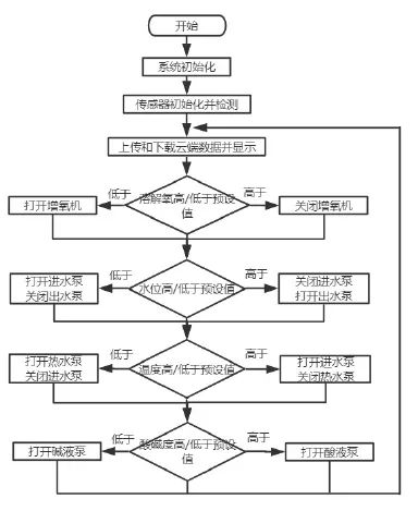 下位机是整个系统的控制执行部分,通过传感器对鱼塘环境因子进行检测以及控制通过控制设备调节鱼塘环境因子,通过本地显示面板实现近程控制。