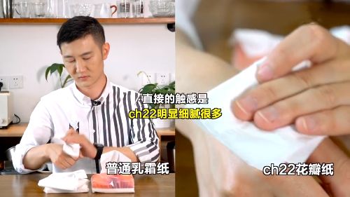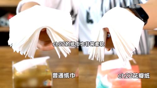 除了触感好,含水量高也是这款乳霜巾的特色。一般普通乳霜纸的含水量是6%,而ch22花瓣纸的含水量高达20%,是我用过的最柔软的纸巾了,没有之一。别说用在居家清洁方面了,就算是用于肌肤之上,亲肤力和清洁力都是更胜一筹的,而且更锁水,更耐用。