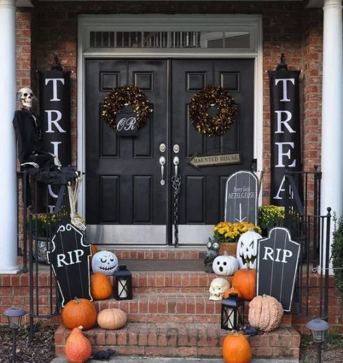 大门前装扮也至关重要,可以在门牌上配置一些蜘蛛、蝙蝠类的小饰品,或者在门前摆上一些南瓜饰品,也可以用德爱威内墙涂料在门上,或在墙面画一些万圣节特有的“恐怖”涂鸦,这样的装扮,足以让人感受到浓浓的万圣节气氛。