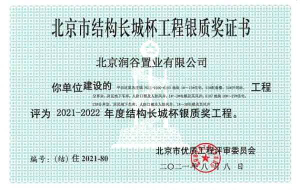 北京市优质工程评审委员会授予公司结构长城杯证书