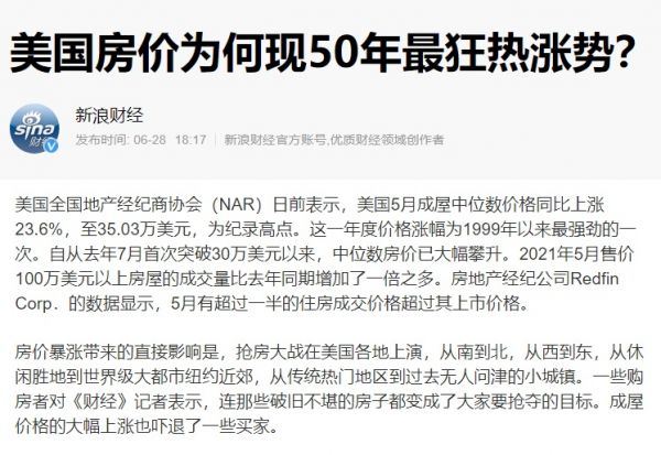美国城镇化早就完成了吧,直到今天美国住房的租金回报率仍然远远高于中国。至于房价,也在持续上涨。比如财经杂志今年6月的这篇报道(下图),就透露了很多真相: