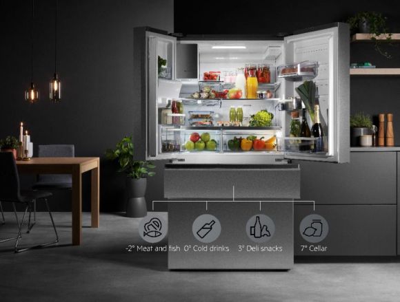 外观设计简约奢华又精致小巧,AEG冰箱内部的功能丝毫没有折扣,十分的强悍。三温区对开门,内部超大的空间精准的分区,能够储存不同的食材产品。无论是新鲜蔬菜还是生鲜鱼肉,分门别类的放入冰箱内部的不同分区,不同温区之间的独立温控能够保障不同食材能够处于最适合的存储温度。