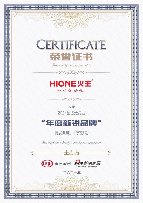 荣誉见证,进击未来!火王集成灶荣膺新浪家居2021集成灶“年度新锐品牌”