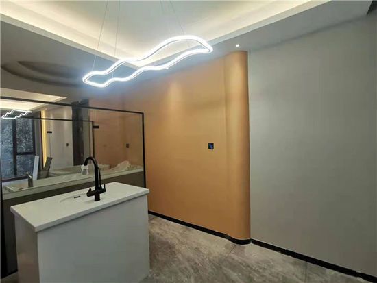 会所由杭州资深设计师操刀,壁材选用的正是克洛斯威“佛罗伦萨、蛋壳光”两款产品。