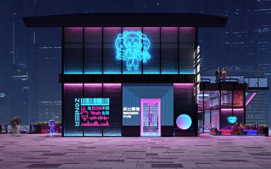 空间中大面积使用不锈钢、铝以及玻璃等冷调材质,用光线勾勒建筑线条,用色彩碰撞填充环境氛围,运用光线和镜面给冷峻基调增添真切生机。大胆选用具有不羁秉性的哪吒IP作为品牌形象,融合在未来空间中的桀骜气质也散发着超然于世的夺目光彩。项目一经落地,吸引了不少年轻人光顾打卡。