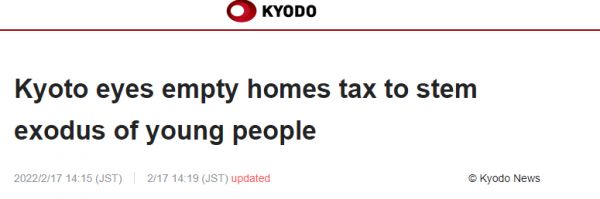 据共同社等多家日媒消息,日本京都市政府本周四(17日)提交了一份法案,拟对市内无人居住房屋的实际持有人征收所谓“空房税”,以此应对房地产价格飙升和年轻人流失等问题。