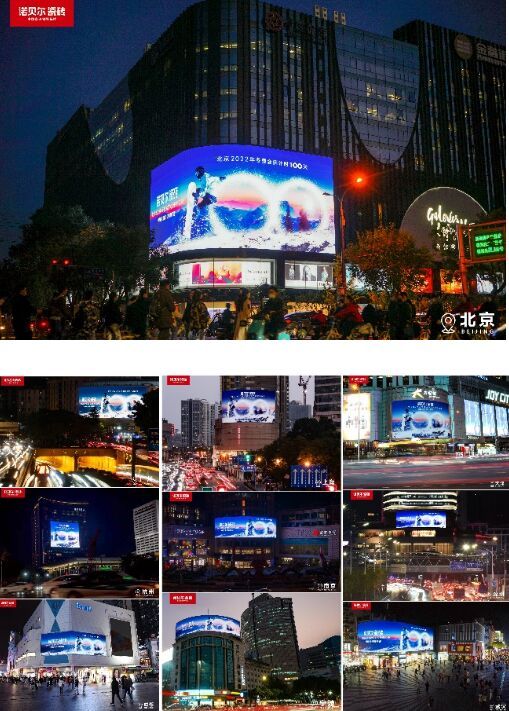距离冬奥会100天时,作为北京2022年冬奥会官方瓷砖供应商,强势登陆北京、上海、广州、成都、宁波、天津、南京、杭州、深圳和武汉10城CBD区域的巨幕大屏,共同发声助力冬奥会。