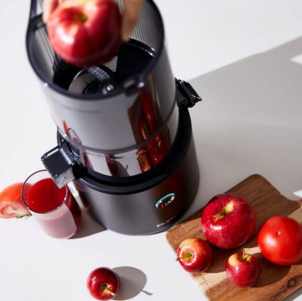 受制与榨汁机的容量,每次都要榨好几次才能满足全家人对果蔬汁的食用?惠人H300E带来增大了整整3倍的136mm的大口径投料口,无需切成小块,可以整投整颗梨、整个橘子,以及整串葡萄、整根胡萝卜等,一次即可榨出满满2L的果蔬汁,满足全家享用,健康美丽百分百!