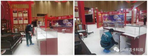 此阶段也正是疫情防控的关键时期。在进入现场前,洁卡科技的服务人员在入场口科学的布置了消杀环节对所有进场的服务人员及设备进行了现场消杀工作,确保带进现场的所有设备及进入现场的服务人员安全无毒,并在场馆内进行了有效的消毒灭菌工作。消毒产品采用的是我方取得的专利技术,可以更安全而且有效的消除空气中的病毒。
