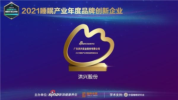 在本届中国睡眠产业峰会上,由中国睡眠研究会学术支持的“2021新浪健康养生睡眠年度总评榜”评选中,洪兴股份凭借在家居服助眠方面的创新成果,荣获“2021睡眠产业年度品牌创新企业”。
