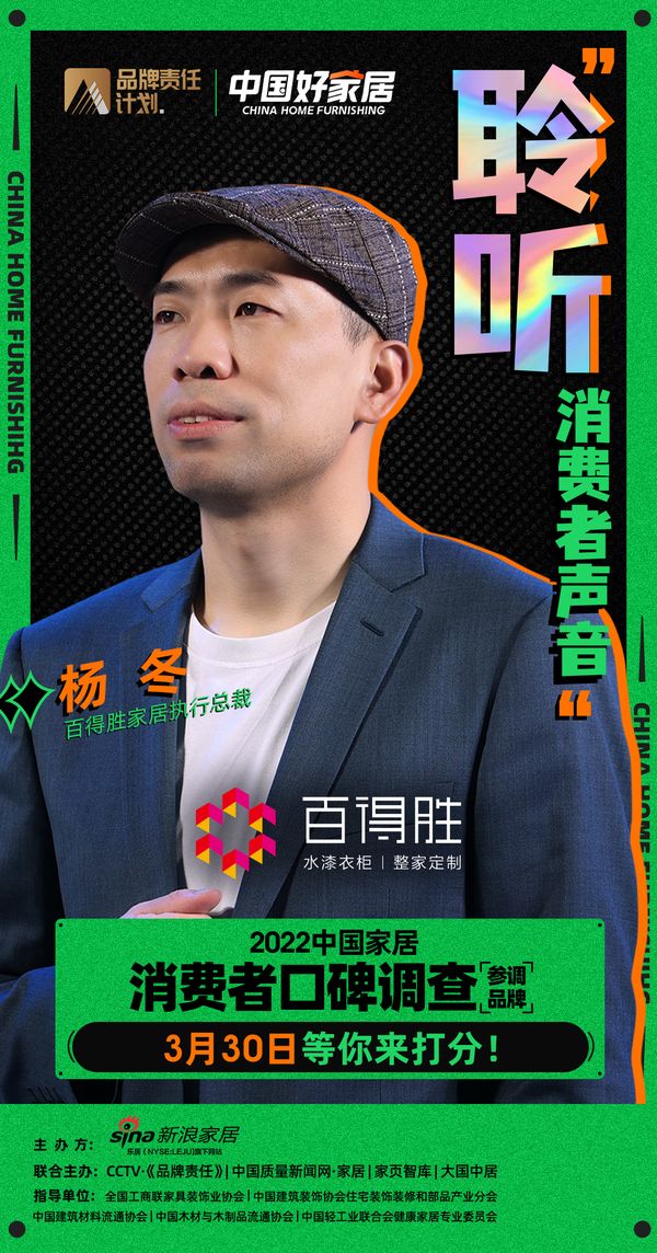 “聆听消费者声音,维护消费者权益”,经过主办方进行资格审查后, “百得胜”作为《中国好家居——2022中国家居消费者口碑调查》参调品牌,3月30日诚邀您前来打分!