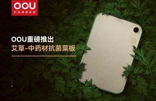 OOU推出的A1艾草中药抗菌菜板,秉承了绿色发展新理念,将新科技运用到菜板上,保证食物健康的最后一公里,传承中华民族中医药文化,打造科技健康家居,致力成为新国货品牌标杆。
