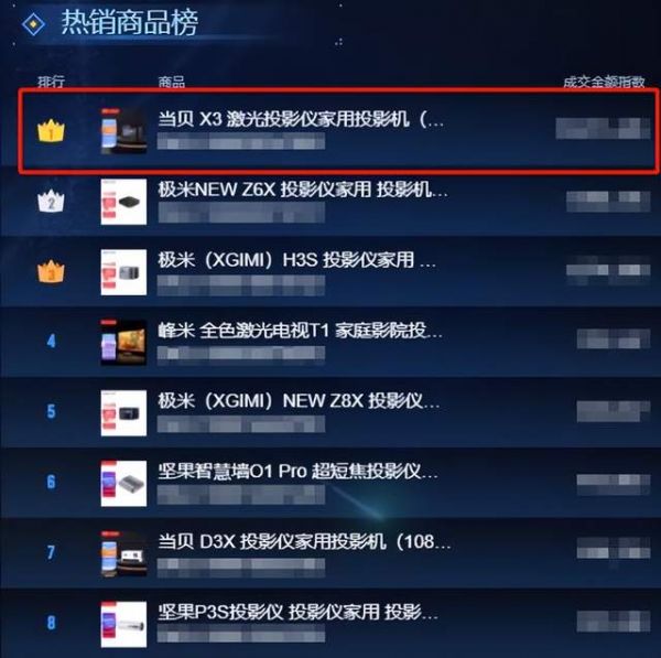 年货节国内投影仪市场当贝投影仪稳站前2!坚果爱普生明基小米掉队?