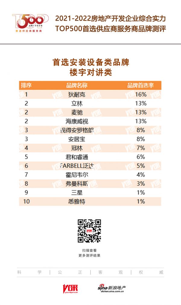 海康威视入选“2022 房地产开发企业综合实力TOP500首选供应商·楼宇对讲类”