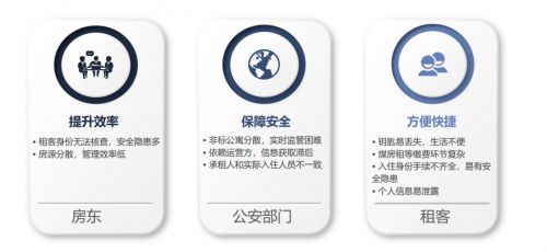 现阶段,弄丢钥匙的情况时有发生,租客也会担忧个人人身安全与信息泄露;因房源分散,房东管理起来十分不便,经常为催缴房租水电头疼不已,又害怕租客半路退租、转租;对公安部门来说,因为流动人口登记管理、数据采集困难,与网约房、出租房等非标住宿的违法犯罪现象滋生,为公安部门带来了庞大的工作量和人力成本,也为社会治安管理带来极大的挑战。