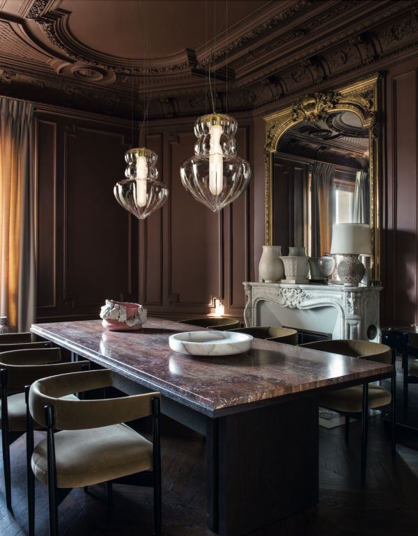 在Vallonné系列中,灯具采用透明水晶制成,包含一个以锥形的水晶为核心的隐藏光源。另一方面,Vallonné Opale是用护套技术制成的,外层包裹着特别设计的乳白色树脂光泽材质,光源从中轻柔漫射,仿佛欧珀石一般呈现出魅力的光谱色泽。金属饰面有两种类型:黑色镀铬和青铜色。水晶色、靛蓝色、长春花色和大地沙色是Vallonné水晶的颜色选择,而Vallonné Opale则采用夹层白色。