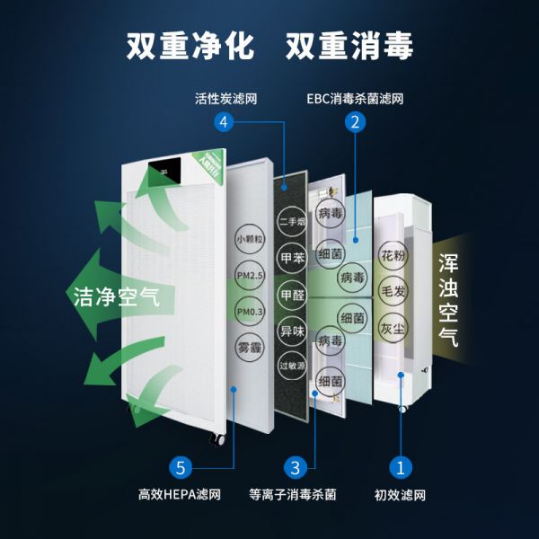 近年来,医疗机构对于室内的空气消毒更加重视,对于消毒净化方式产生的效果已经不只是停留在静态消毒效果方面,人机共存的动态消毒效果更具有临床实际意义。空气消毒净化机采用等离子和EBC消毒杀菌滤网双重消毒技术,可实时消毒,人机共存,相较于紫外灯、臭氧技术具有更广泛的应用场景。